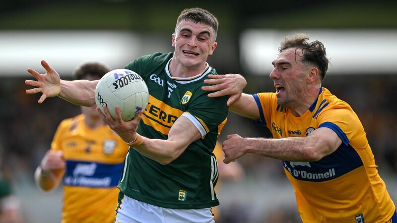 Sean O'Shea of Kerry in action against Alan Sweeney of Clare. Photo by Brendan Moran/Sportsfile