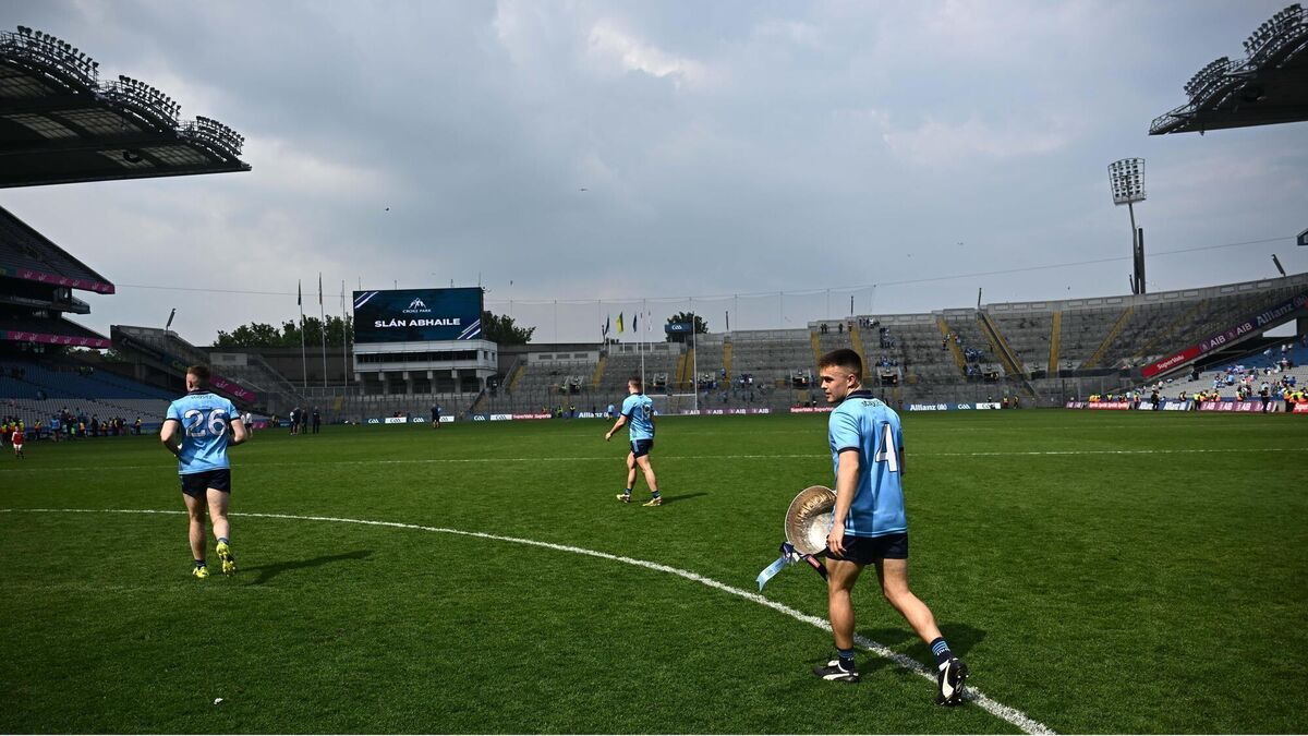 Eoin Murchan of Dublin takes the Delaney Cup back to the dressing room he Leinster GAA Football Senior Championship final win.