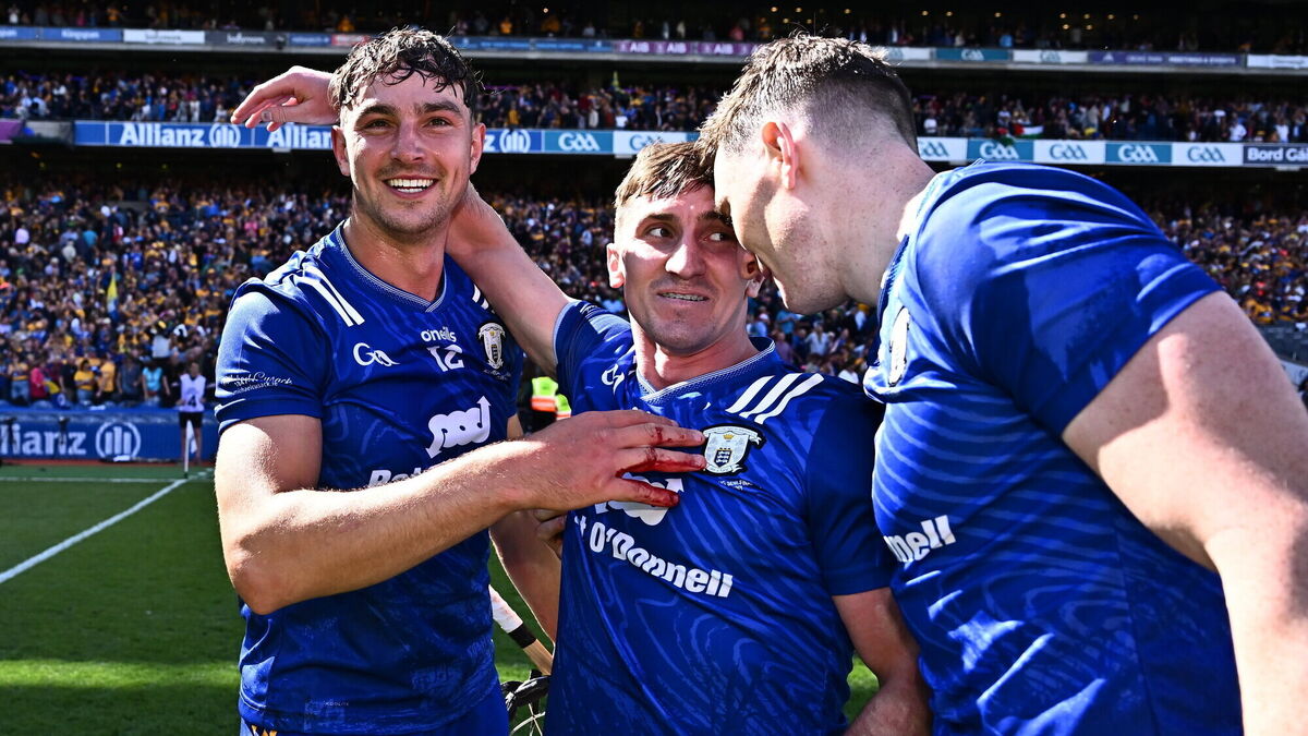 BIG IMPACT: Clare players, from left, Peter Duggan, Ian Galvin and David Fitzgerald celebrate after their All-Ireland SHC semi-final win over Kilkenny. Photo by Piaras Ă“ MĂdheach/Sportsfile