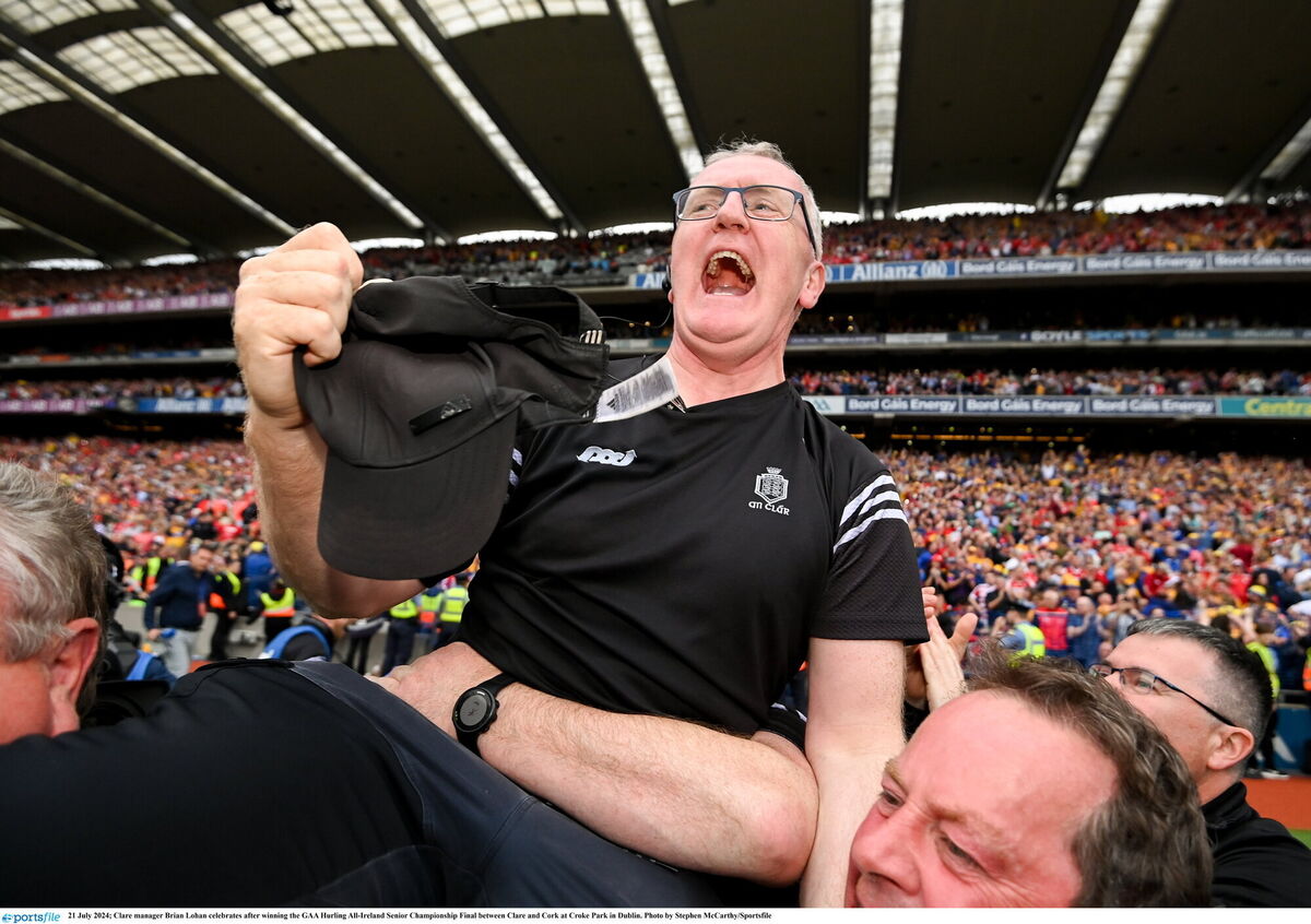 Clare manager Brian Lohan celebrates. Photo by Stephen McCarthy/Sportsfile