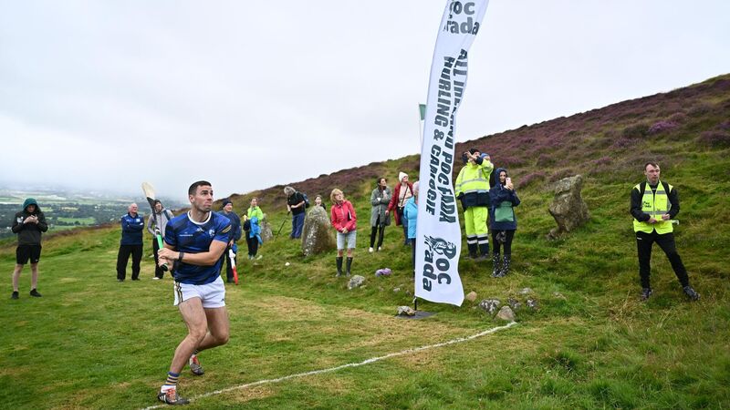 KING OF THE MOUNTAIN: Fionán Mackessy of Kerry during the 2024 M. Donnelly All-Ireland Poc Fada Finals at Annaverna Mountain in the Cooley Peninsula. Picture: Ben McShane/Sportsfile