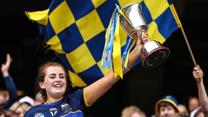 NOT TO BE DENIED: Tipperary's Sinead Meagher lifts the Kay Mills Cup. Pic: ©INPHO/Ben Brady