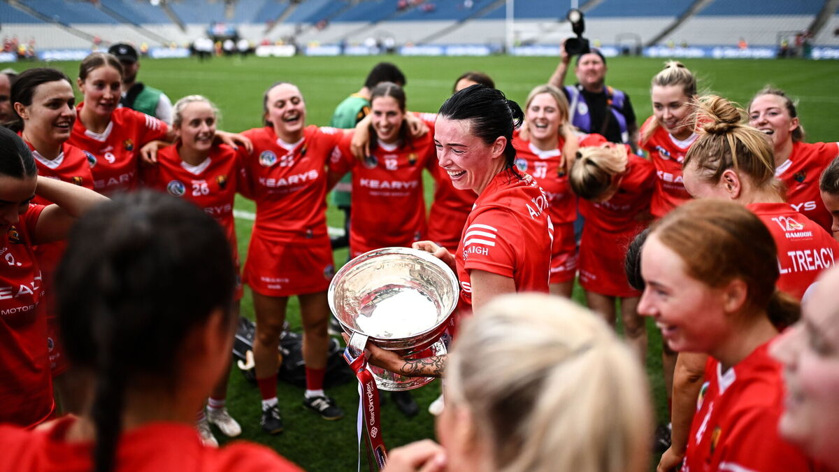 STRENGTH IN NUMBERS: Ashling Thompson of Cork celebrates with the O'Duffy Cup after her side's victory in during the Glen Dimplex Camogie All-Ireland Senior Camogie Championship final. Pic: Piaras Ă“ MĂdheach/Sportsfile