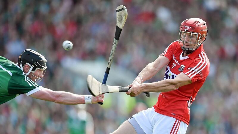 2014: Bill Cooper, Cork, in action against Wayne McNamara, Limerick. Pic: Brendan Moran / SPORTSFILE