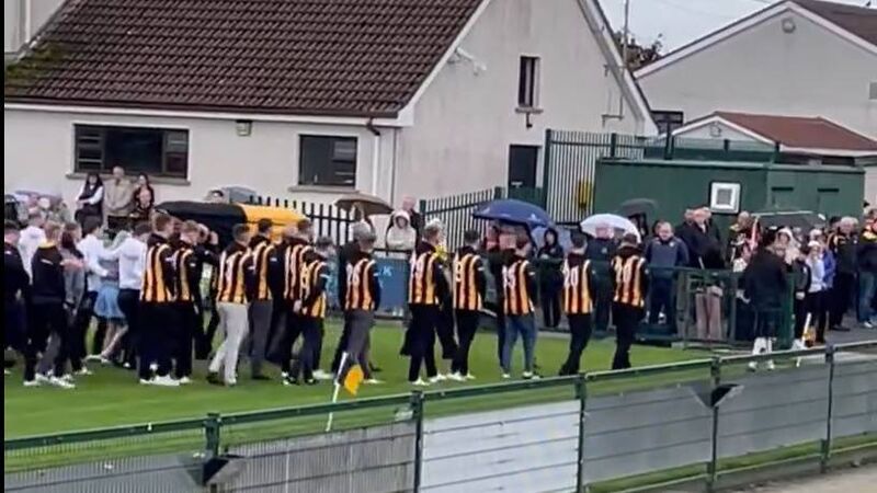Caolan Finnegan's coffin was carried around the Crossmaglen Rangers pitch.