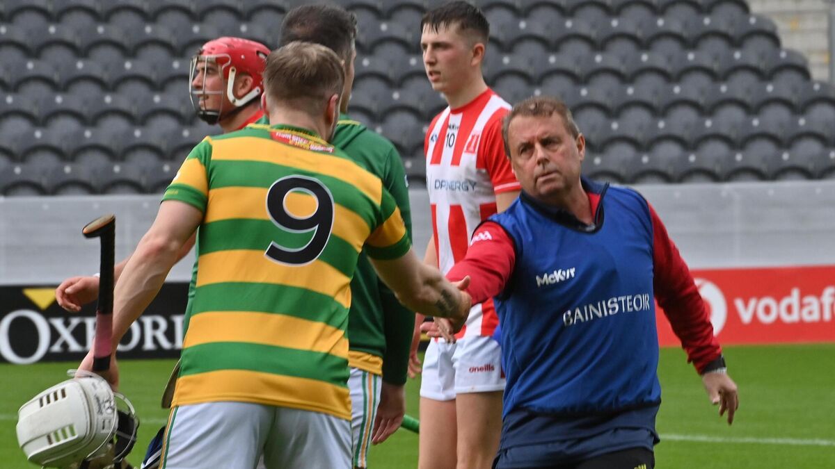 Daniel Meaney, Blackrock shakes hands with Imokilly manager Denis Ring after their Co-Op Superstores Premier SHC match at SuperValu Páirc Uí Chaoimh, Cork. Pic: Dan Linehan