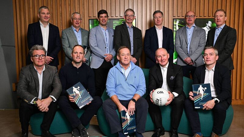 The GAA Football Review Committee members, back row, from left, James Horan, Michael Meaney, Eamonn Fitzmaurice, Patrick Doherty, Shane Flanagan, Malachy O'Rourke and Alec McQuillan, front row, from left, Colm Nally, Michael Murphy, Colm Collins, chairperson Jim Gavin, and Seamus Kenny after a briefing at Croke Park Photo: Seb Daly/Sportsfile