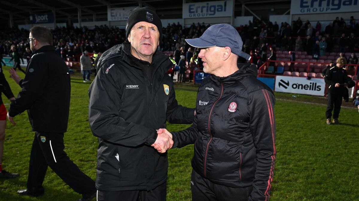 LATE LATE SHOW: Kerry manager Jack O'Connor and Derry manager Paddy Tally after the Allianz Football League Division 1 match between Derry and Kerry at Celtic Park. Pic: Stephen McCarthy/Sportsfile
