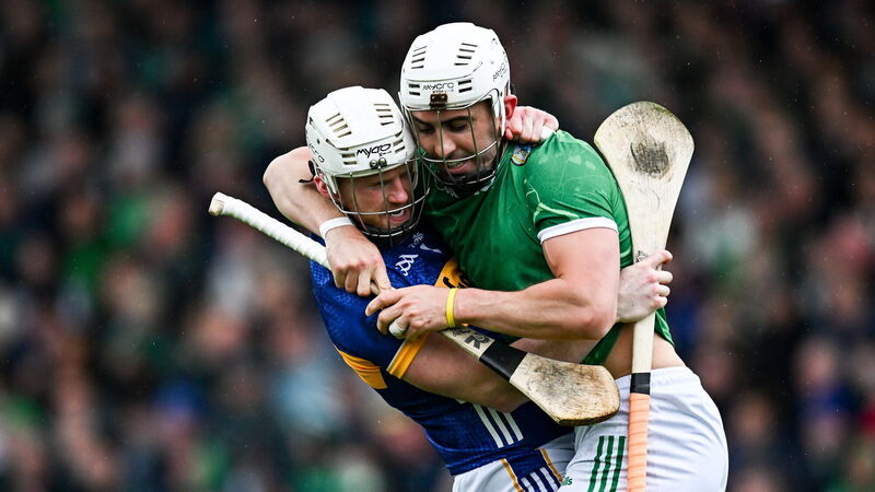 Aaron Gillane of Limerick tussles with Michael Breen of Tipperary. Pic: Seb Daly/Sportsfile