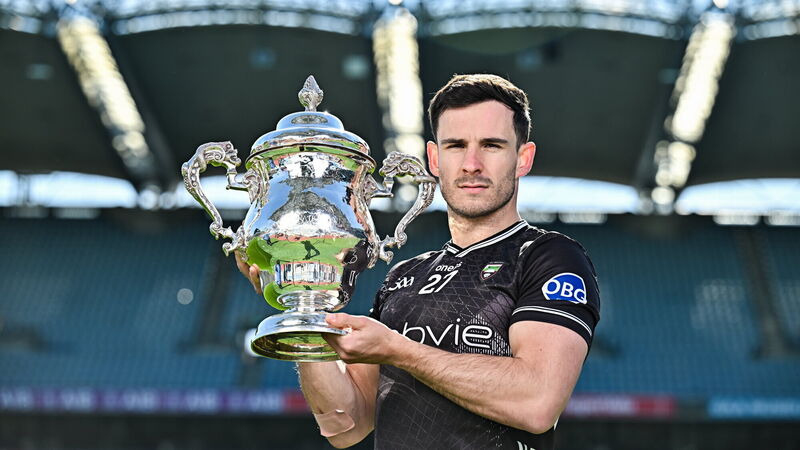 Niall Murphy of Sligo pictured with the Tailteann Cup at the launch of the Tailteann Cup. Pic: Sam Barnes/Sportsfile