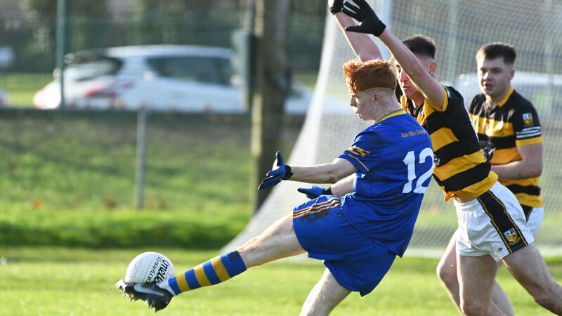 Ballymacelligott's Jack Joy shoots from Buttevants' Aaron Trimm during the AIB Munster club JFC final at Mallow. Pic: Eddie O'Hare