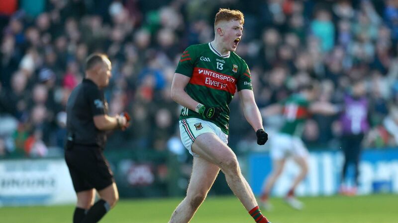 Mayo’s Darragh Beirne celebrates scoring his sides second goal. Pic: James Crombie/Inpho