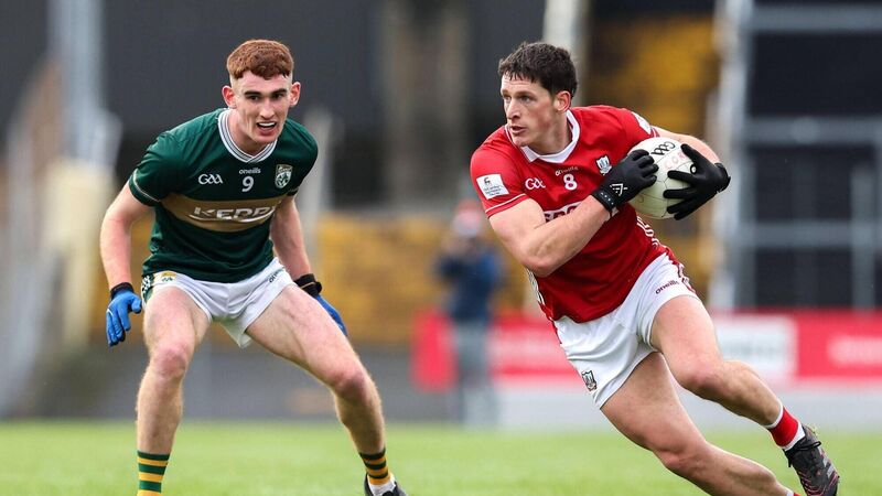 Cork's Colm O'Callaghan drives past Kerry's Cillian Trant. Pic: Michael P Ryan/Sportsfile