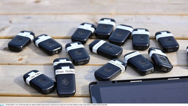 GPS units before the Allianz Football League Division 2 match between Louth and Cork. Pic: Stephen Marken/Sportsfile