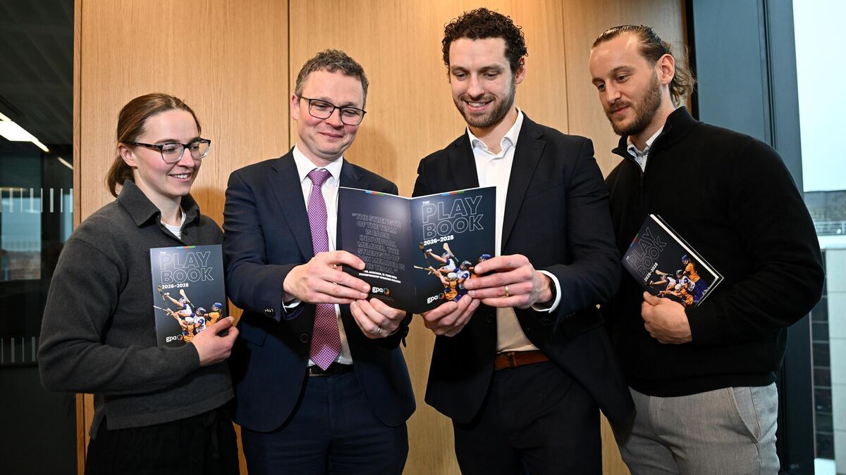 In attendance to mark the publication of the Gaelic Players Association Playbook 2026-2028 are, from left, Dublin footballer Orlagh Nolan, Minister for Arts, Media, Communications, Culture and Sport Patrick O'Donovan TD, Gaelic Players Association chief executive Tom Parsons, and Limerick hurler Tom Morrissey. Pic: Seb Daly/Sportsfile
