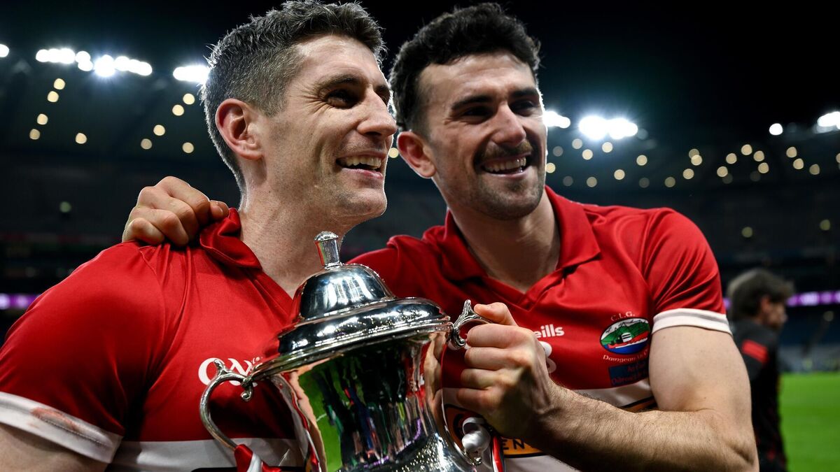 MAESTROS: Paul Geaney, left, and Mark O'Connor of Dingle celebrate with the Andy Merrigan Cup after winning the Club SFC at Croke Park. Pic: Ray McManus/Sportsfile