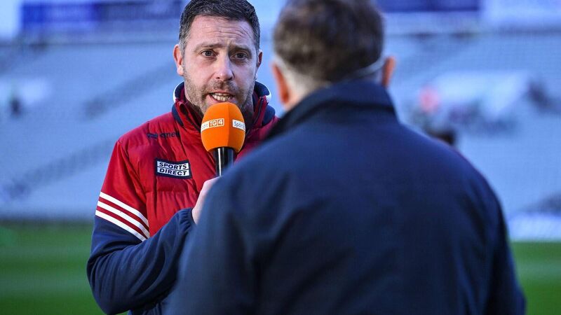 REBEL YELL: Cork selector Ronan Curran is interviewed by Micheál Ó Domhnaill of TG4. Pic: Brendan Moran/Sportsfile