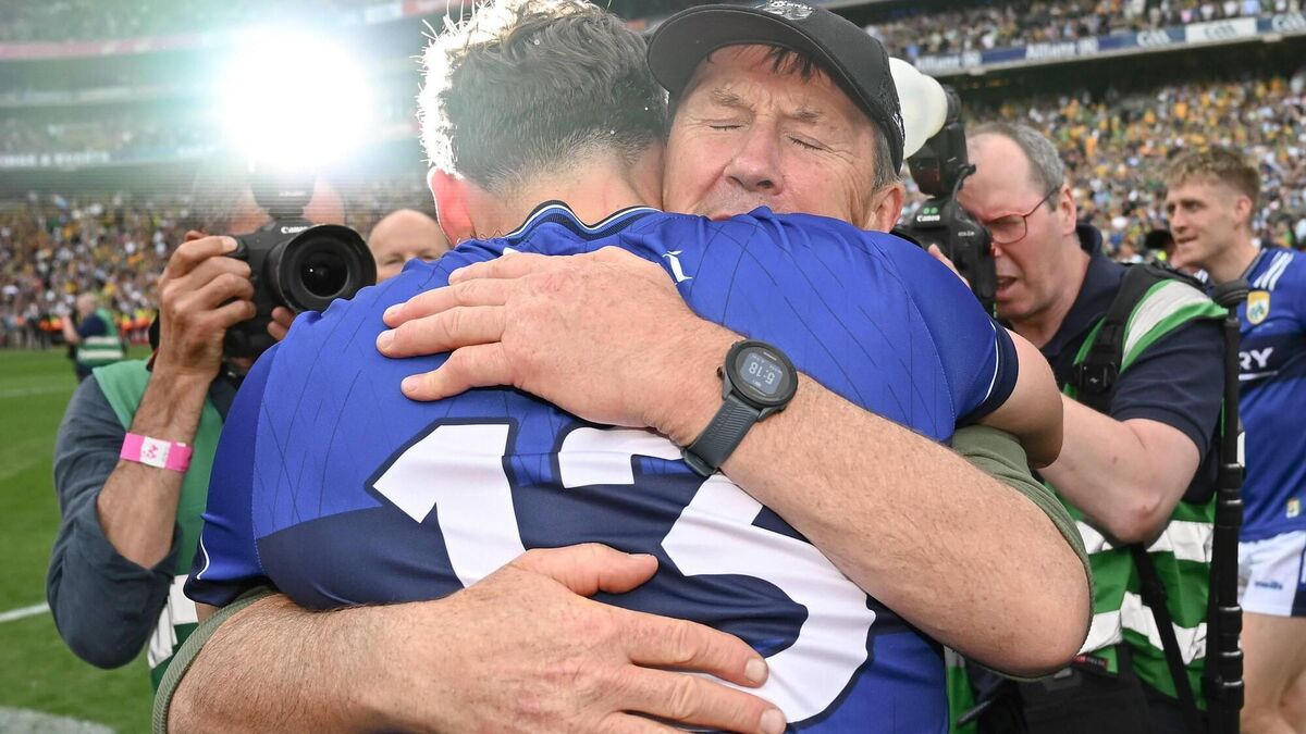 DOUBLE DREAMING: Kerry manager Jack O'Connor and David Clifford celebrate last summer's high, an All-Ireland final tour de force against Jim McGuinness' Donegal. This year, the Tir Chonaill men appear to have set the T&Cs. Pic: Seb Daly/Sportsfile