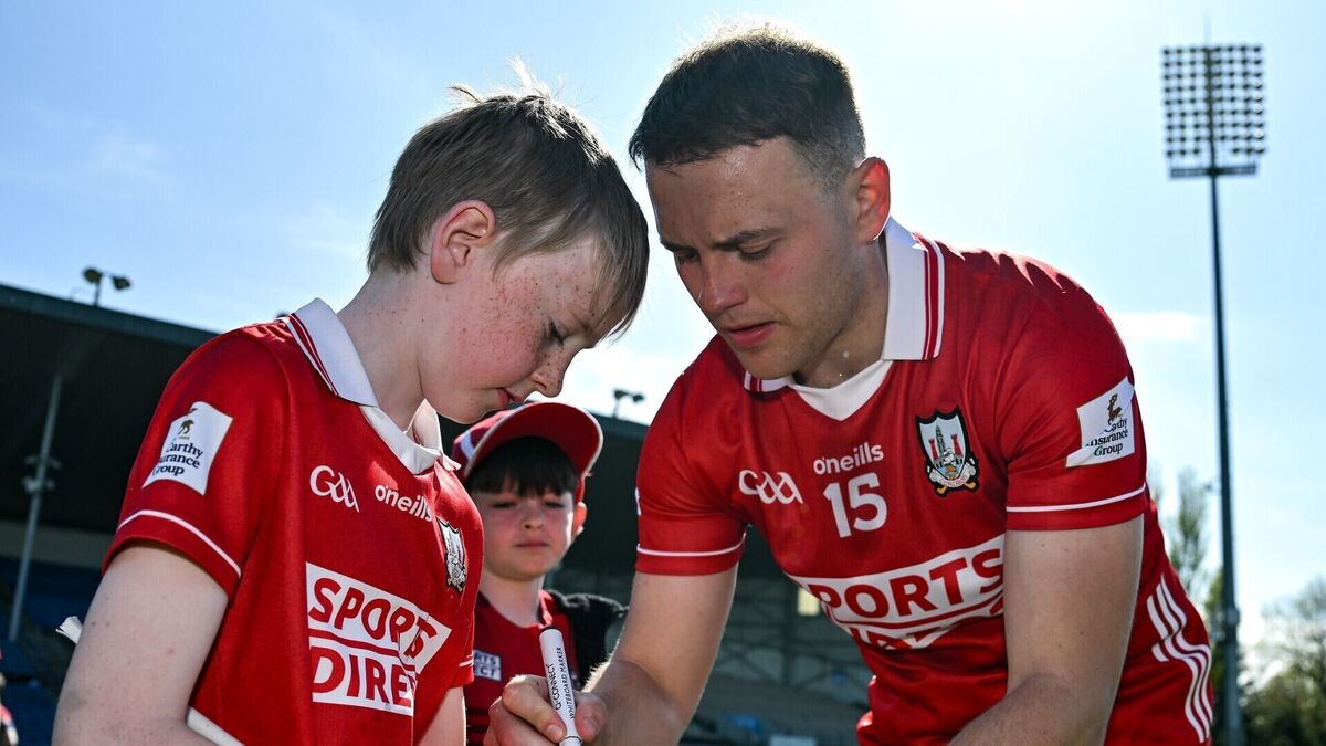 Steven Sherlock of Cork signs autographs after his side's victory. Pic: Sam Barnes/Sportsfile