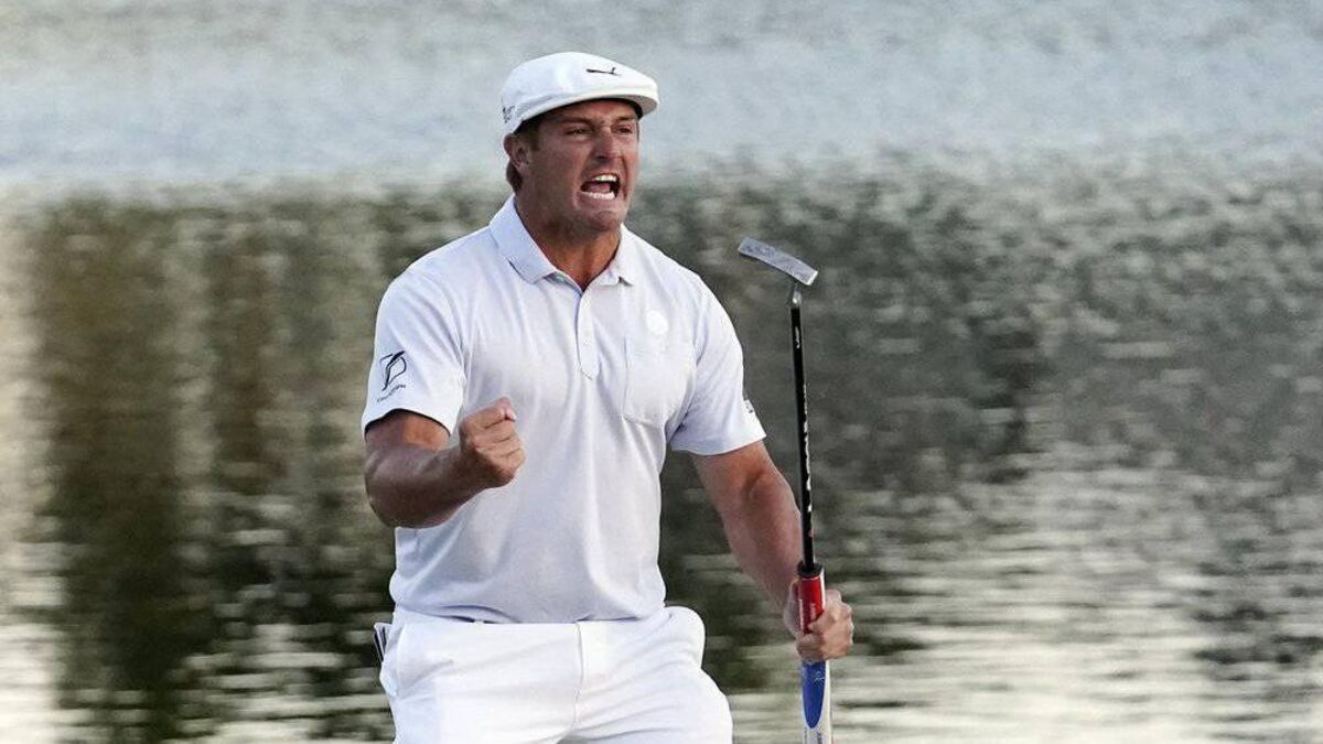 WINNER: Bryson DeChambeau celebrates after sinking a putt to win the Arnold Palmer Invitational golf tournament on Sunday, in Orlando.