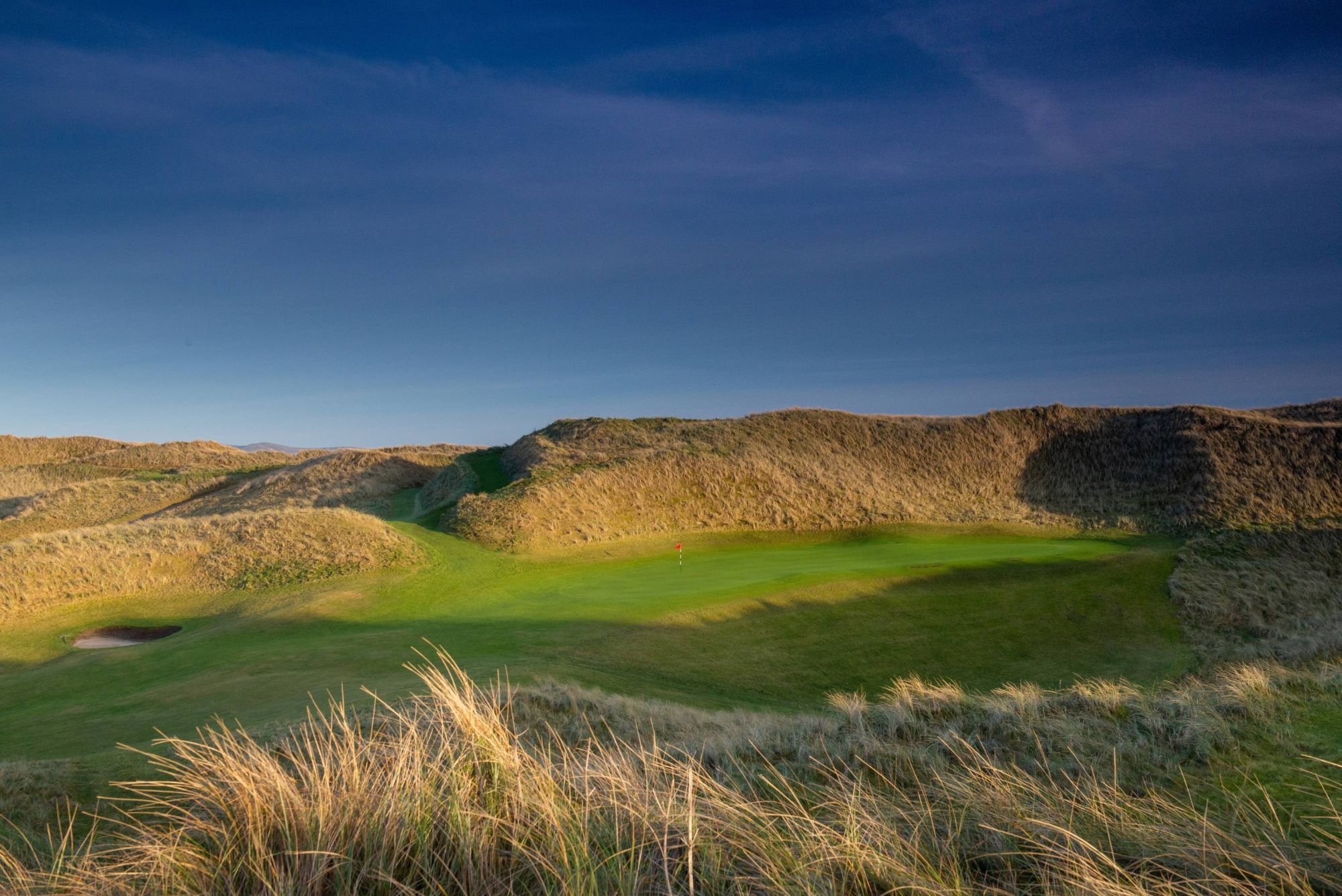 I will not be dissuaded from saying that this is Ireland’s most beautiful golf hole. We are blessed with many beauties but this hole curls around the enchanting (often empty) Portsalon beach. From a high tee your drive takes on both the beach and a river, which also runs in front of the green. It is a long and glorious hole and, from the tee box, the views of Lough Swilly and the mountains are majestic. Two perfect shots required.