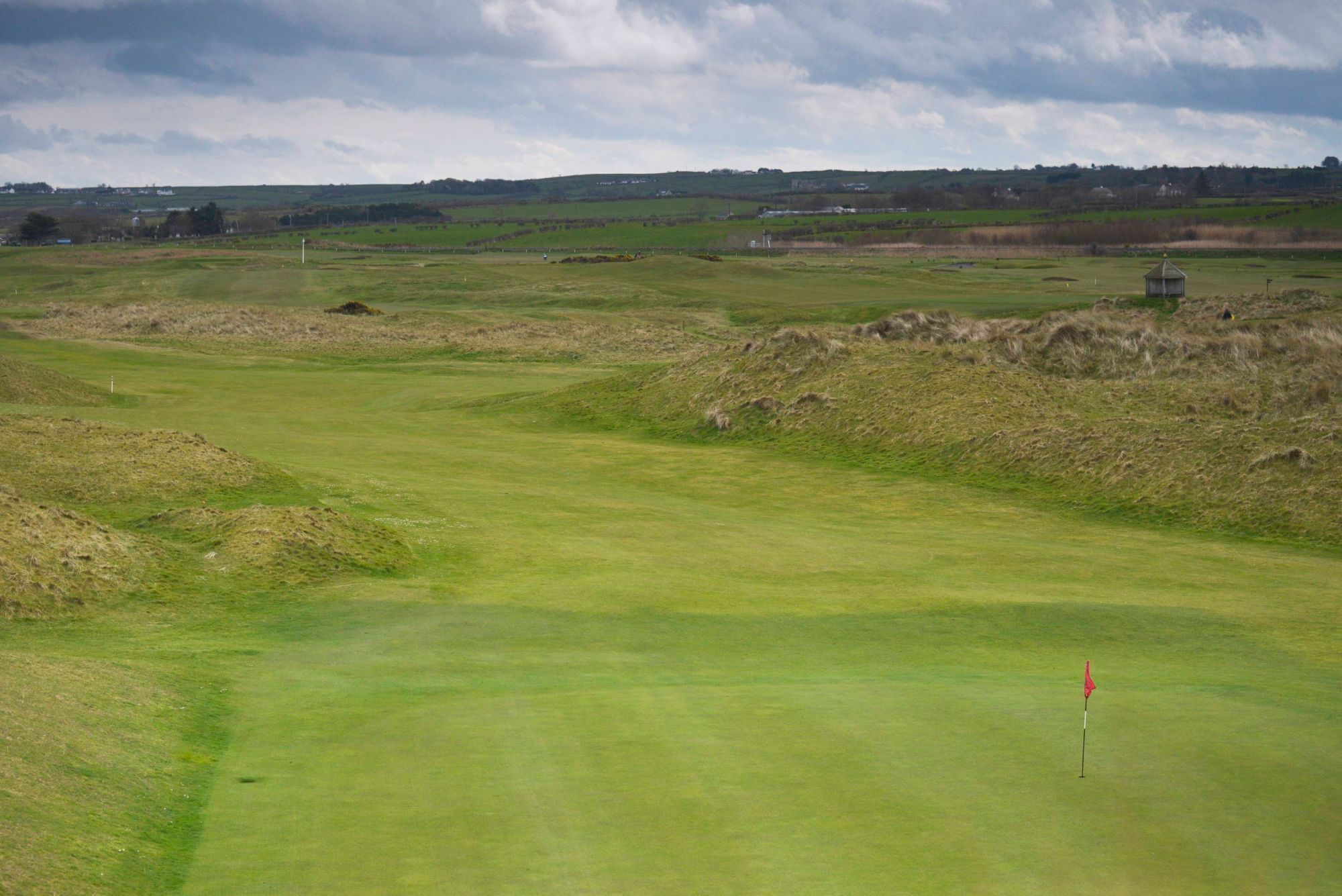 This is one of the toughest holes you will ever face… and yet it is only Index 5 on this world famous links. A blind drive up over the dune and straight at the Mourne Mountains is your starting point and you’ll need someone – anyone – to give you a line off the tee. Then it is a steep descent to the flat fairway below where the green looks a mile away. Finding the fairway is cause for celebration, before you remember that your long second still has to squeeze between more dunes and fly a bunker. Two brutally tough shots and what a way to finish the front nine.
