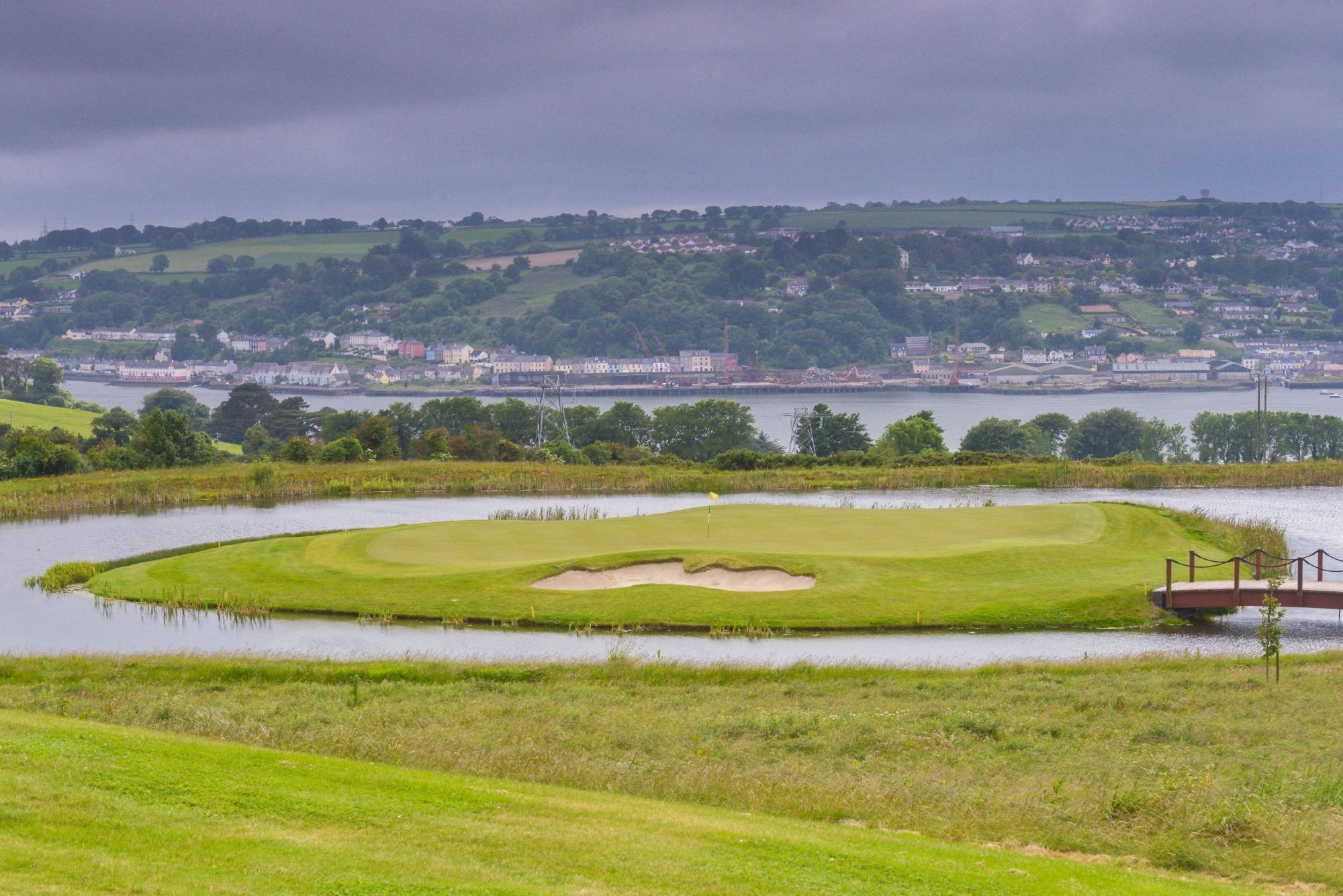 What might be a par five on some courses (in terms of length) is Ireland’s toughest par four. Every terrifying element is here, except a bunker. From a high tee, golfers ideally need to fade a drive around a cliff face and over a stream to the fairway far below. Find the fairway and you have a shot at reaching the green which sits tightly between the trees over a big, magnetic lake. It will be a long approach and many golfers will choose to lay up short of the lake to give themselves a mid to high iron shot that offers a small chance at par. Force that second shot and the water and the trees will leave you staring at double bogey, or worse.
