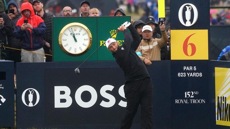 Spain's Jon Rahm tees off the 6th during day one of The Open at Royal Troon,. Picture: Owen Humphreys/PA Wire.