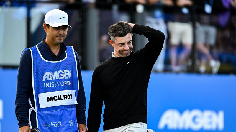 TOUGH TO TAKE: Rory McIlroy of Northern Ireland reacts alongside caddy Harry Diamond. Pic: Brendan Moran/Sportsfile