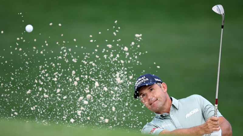 GREAT FORM: Padraig Harrington of Ireland plays a shot from a bunker on the first hole prior to the PGA Championship at Quail Hollow Country Club. Pic: Jared C. Tilton/Getty Images.