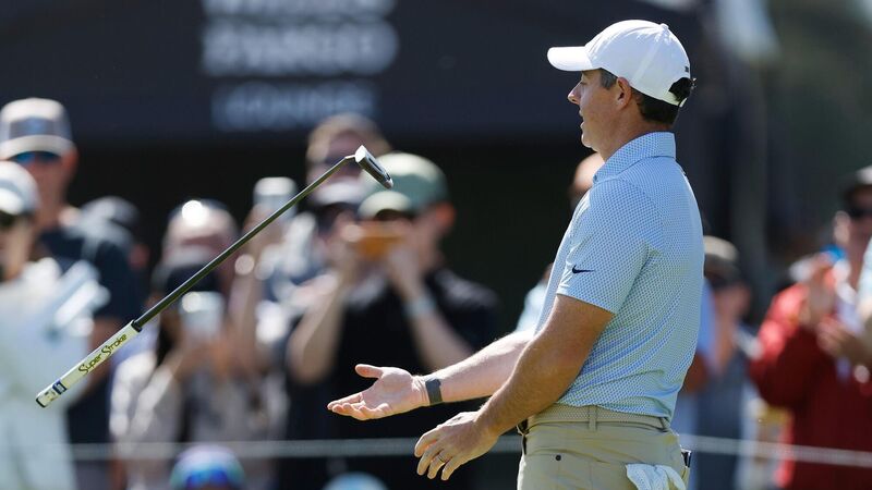 DO ME A FAVOUR: Rory McIlroy, from Northern Ireland, flips his club after missing a putt on the third green during the final round of the Genesis Invitational golf tournament at Riviera Country Club, Sunday, Feb. 22, 2026, in the Pacific Palisades area of Los Angeles. (AP Photo/Caroline Brehman)