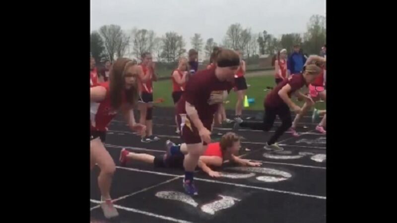 Watch teenager make a hames of her race start - become internet sensation