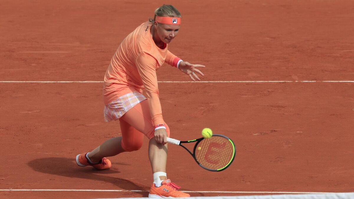Kiki Bertens plays a volley during her dramatic victory over Sara Errani (Michel Euler/AP)