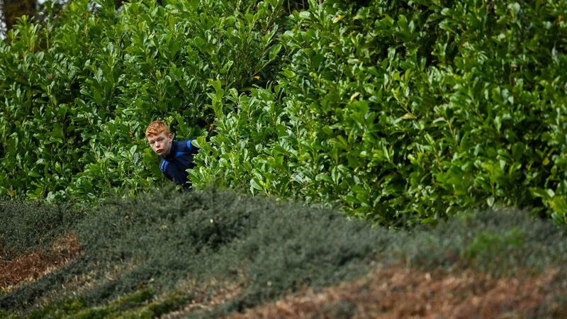 A young local supporter attempts to get a view of the game through bushes during the Allianz Football League Division 1 Round 6 match between Monaghan and Kerry at Grattan Park in Inniskeen, Monaghan.
