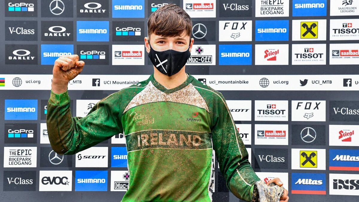 Oisin O'Callaghan celebrates after winning the Junior Downhill event during the UCI 2020 Mountain Bike World Championships in Salzburg, Austria. His achievement saw him named as the RTE Sport's Young Sportsperson of the Year.