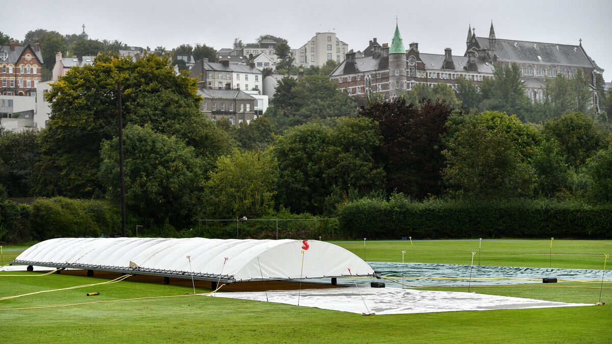 A general view of rain covers on the pitch at The Mardyke Cricket Grounds in Cork. Cork CC are one of the seven Munster clubs to benefit from the Sport Ireland scheme. Picture: Sam Barnes