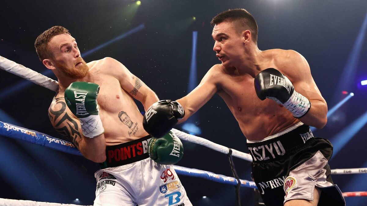 Dennis Hogan stopped by rising Aussie star Tim Tszyu
