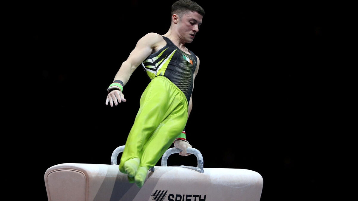 Rhys McClenaghan of Ireland competes on the Pommel Horse in the Men's Artistic Pommel Horse final. Picture: Thomas Schreyer