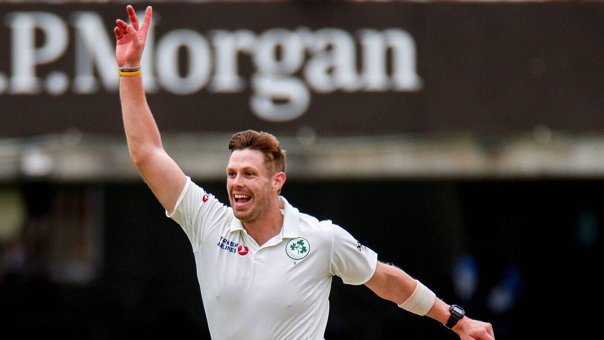 Ireland's Boyd Rankin celebrates taking the wicket of Moeen Ali of England during their 2019 Test match at Lords Cricket Ground. Photo by Matt Impey/Sportsfile