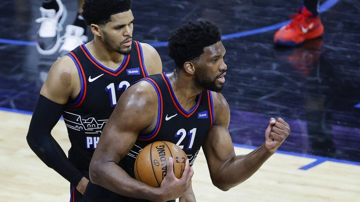 76ER: Philly's Joel Embiid gets pumped for the play-offs.