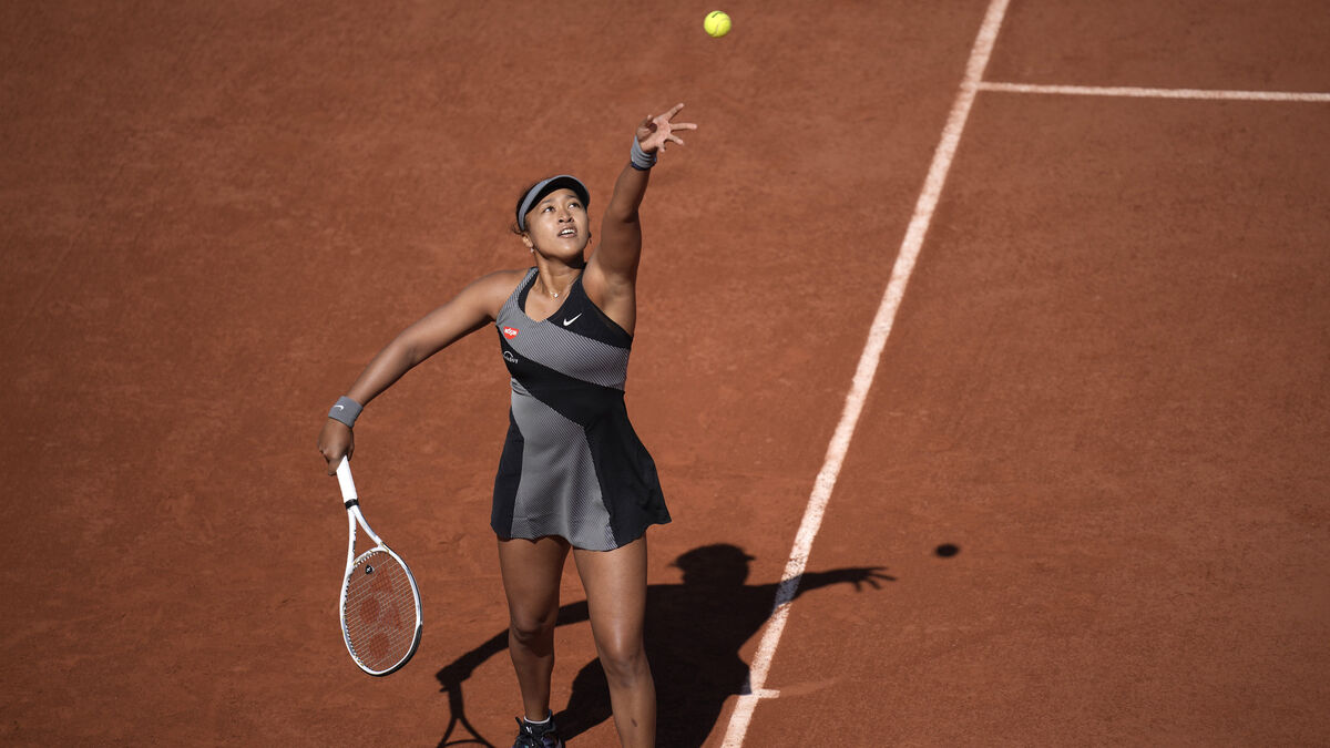 Naomi Osaka serves the ball during her French Open first round match at Roland Garros, Paris. (AP Photo/Christophe Ena)