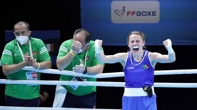 Ireland’s Michaela Walsh beats Stephanie Thour of Sweden to qualify for the Olympic Games. Picture: INPHO/Dave Winter