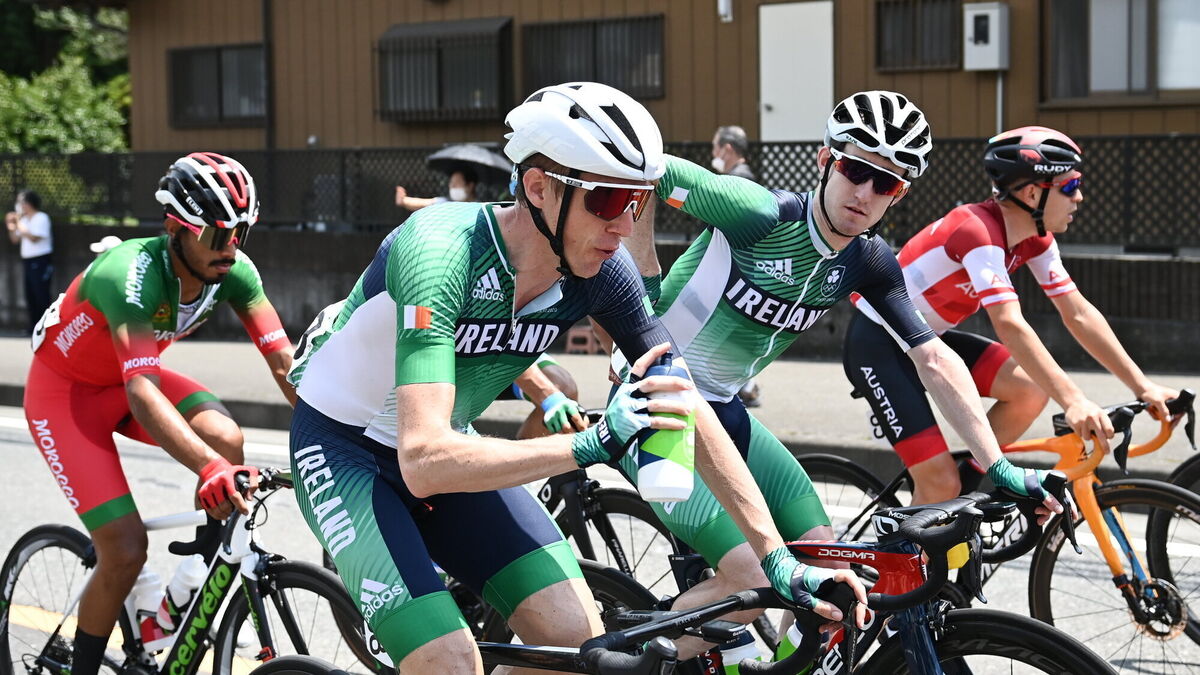 Dan Martin, left, and Eddie Dunbar of Ireland in action during the men's cycling road race from Fuji International Speedway to Musashinonomori Park during the 2020 Tokyo Summer Olympic Games in Tokyo, Japan. Picture: Alex Broadway/Sportsfile