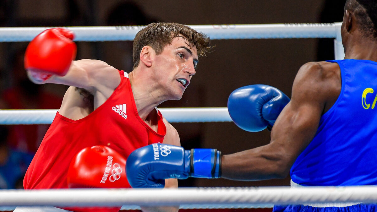 Ireland's Aidan Walsh (red) in action with Albert Mengue Auissi (blue) of Cameroon. Picture:Â INPHO/Photosport/Steve McArthur