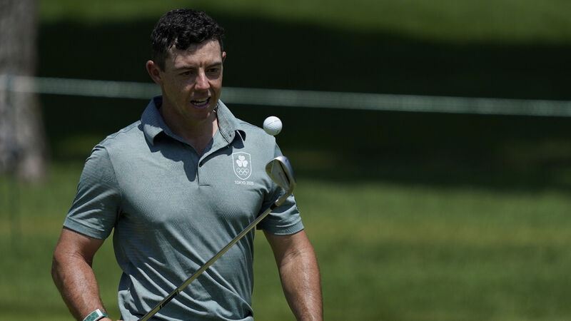 Ireland's Rory McIlroy practices with his chip during a practice session of the men's golf event at the 2020 Summer Olympics, Tuesday, July 27, 2021, at the Kasumigaseki Country Club in Kawagoe, Japan, (AP Photo/Matt York)