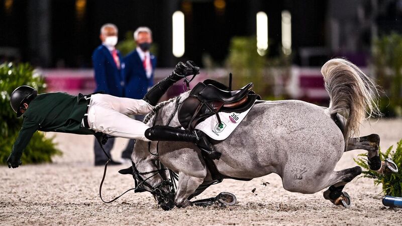 Shane Sweetnam, the first of the Irish in the ring, came off Alejandro after his mount crashed into a number of fences and lost a shoe in the process.