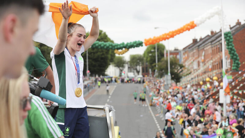 Olympic gold medal champion Kellie Harrington has an emotional homecoming from Tokyo to her community in the North Inner City of Dublin on an open-top bus. Picture: Conor McCabe Photography