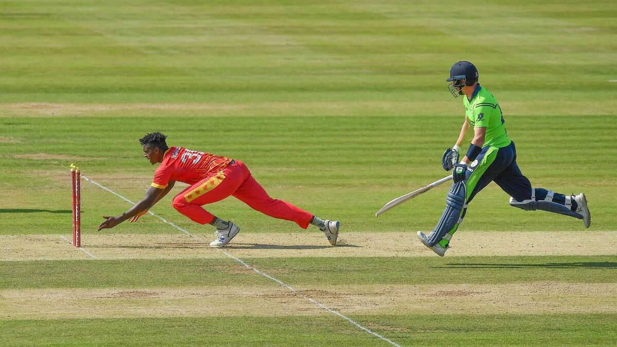 OUT OF HIS GROUND: Richard Ngarava of Zimbabwe runs out Ireland's Craig Young of Ireland. Picture: Seb Daly/Sportsfile