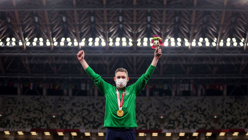 Ireland’s Jason Smyth celebrates with the gold medal. Picture: INPHO/Tommy Dickson