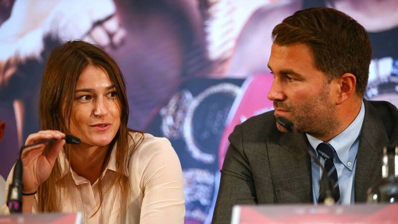 Katie Taylor and Eddie Hearn. Photo: INPHO/Matchroom Boxing/Dave Thompson
